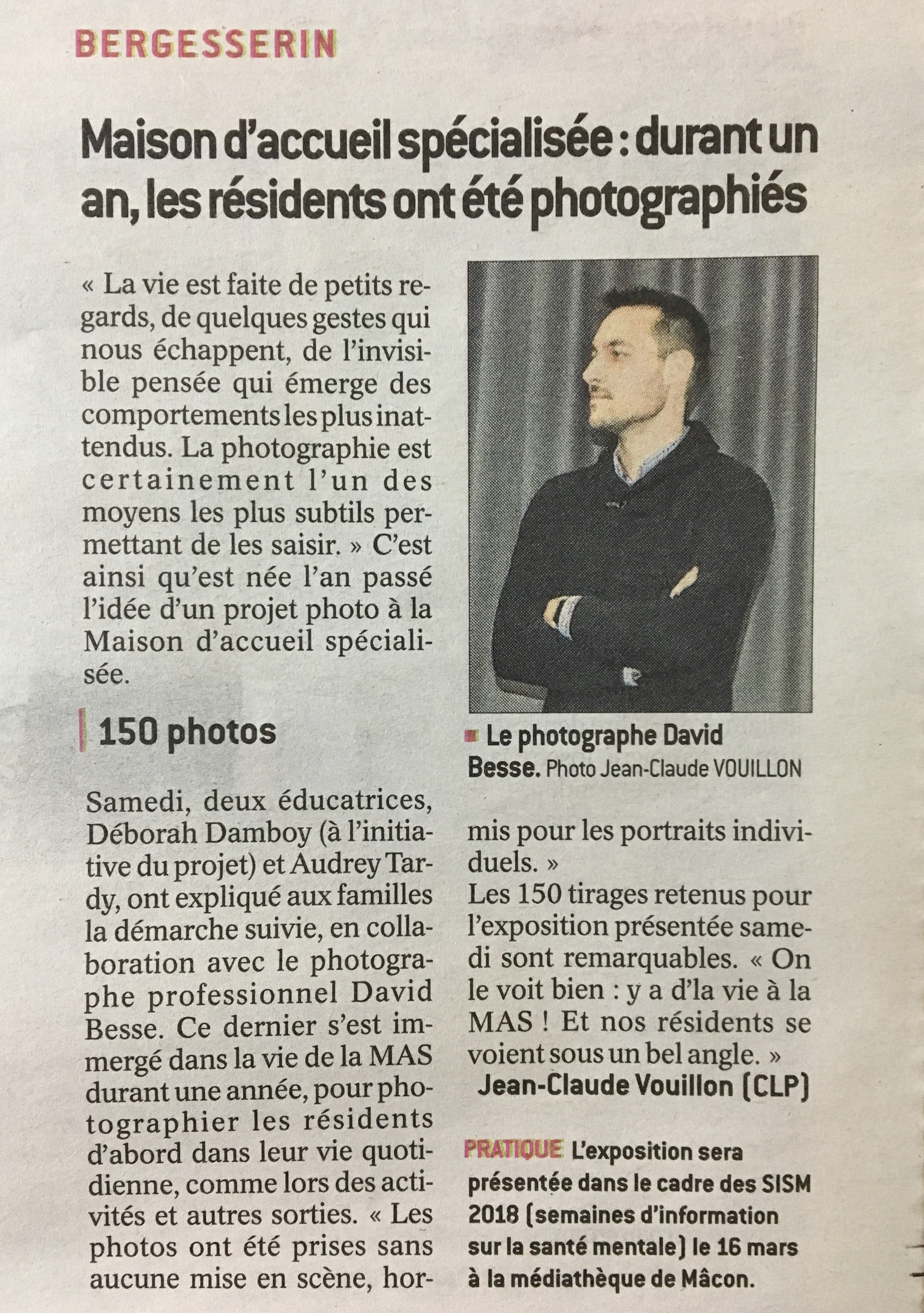 Ce projet, initié par Déborah Damboy alors en poste à la MAS de Bergesserin, a eu pour objectif de mettre en lumière les interactions entre les résidents et les professionnels, et aussi de valoriser individuellement chacun d’entre eux.